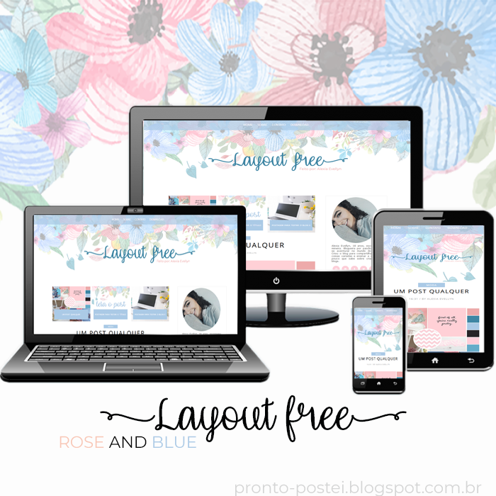Hoje resolvi trazer mais um layout free personalizado para vocês 🎉 A base deste layout free eu peguei do site themexpose e deixei ele com tons de rosa e azul. Para ficar ainda mais bonito eu coloquei um background floral nas cores que escolhi. Este layout conta com um menu fixo e um box de postagens recentes automático que já ensinei a fazer aqui e esses detalhes deram todo um charme para o layout, além de tudo ele ainda é responsivo!